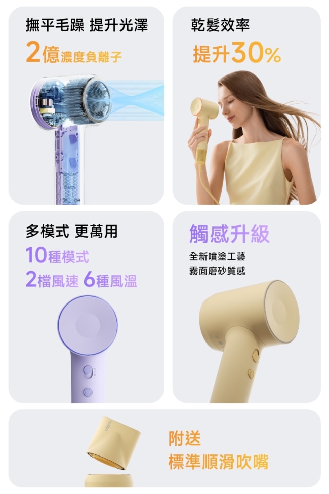 •2億奈米級負離子,頭髮柔順不毛躁