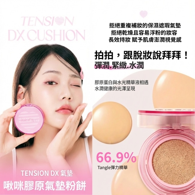 很多人出門前妝容完整但只要到了下午臉上就開始出現乾燥、浮粉甚至原本遮好的瑕疵都跑出來見人。這款啾咪膠原氣墊粉餅就是為了終結這些困擾而生的。它想傳達的概念很簡單不需要重複補妝也能讓肌膚維持一整天的彈潤與緊緻。那種拍一拍就能跟脫妝說拜拜的方便感是每個趕時間的早晨最需要的救星。