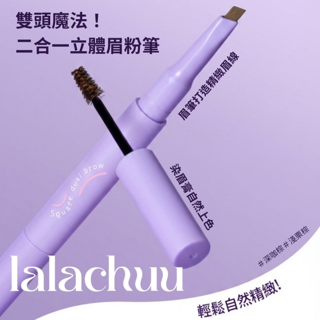 商品簡述lalachuu雙頭眉筆獨家方型筆芯超好畫搭配染眉膏自然立體長效持久抗汗溫和植萃呵護敏感肌。