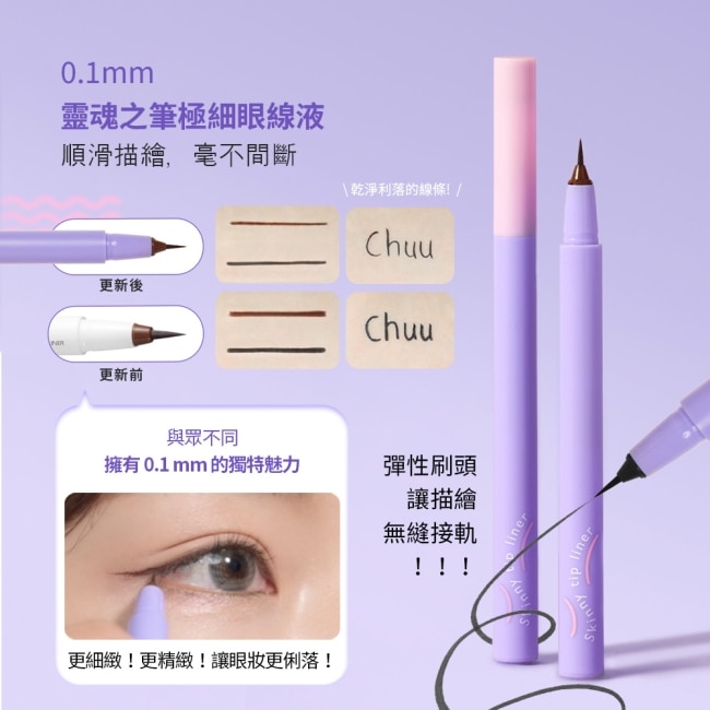 產品採用 0.1mm 超細彈性刷頭無論是填補睫毛根部的隱形細線還是勾勒大膽上揚的貓眼妝都能精準掌控。 其升級版配方確保描繪過程 順滑且毫不間斷即便是化妝新手也能輕鬆實現無縫接軌的俐落線條讓眼妝更顯利落。