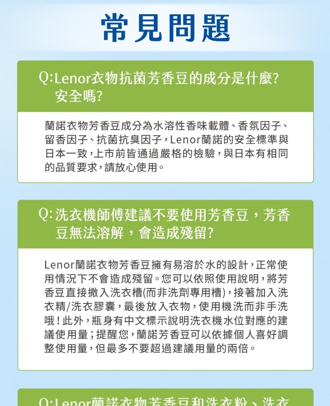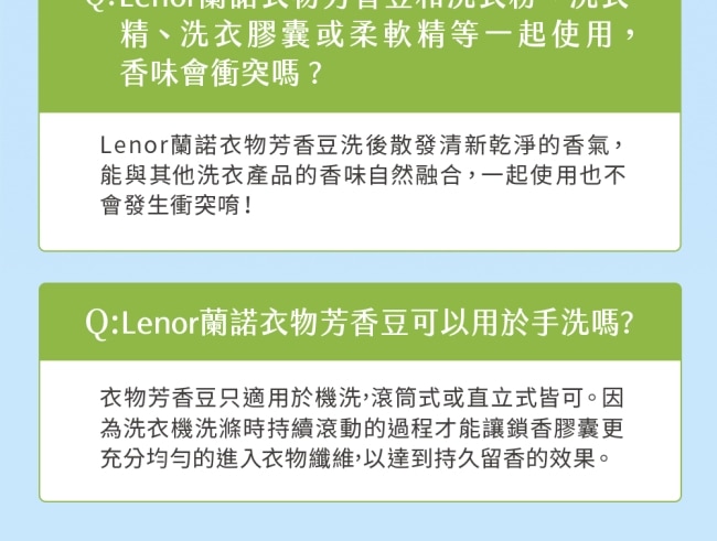 Q:Lenor蘭諾衣物抗菌芳香豆跟我之前使用的衣物芳香豆有何不同?
