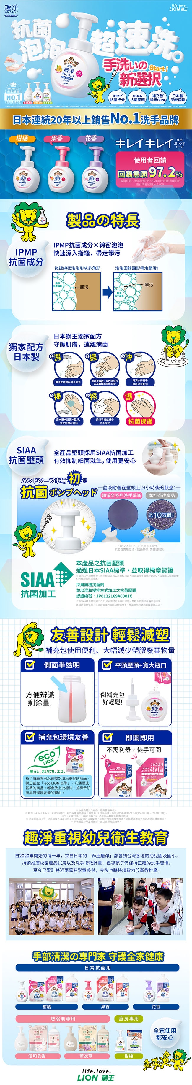 日本獅王趣淨抗菌洗手慕斯250ml花香