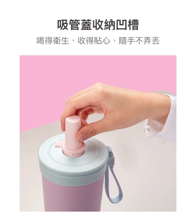 吸管蓋可卡在凹槽中防止遺失或掉落。