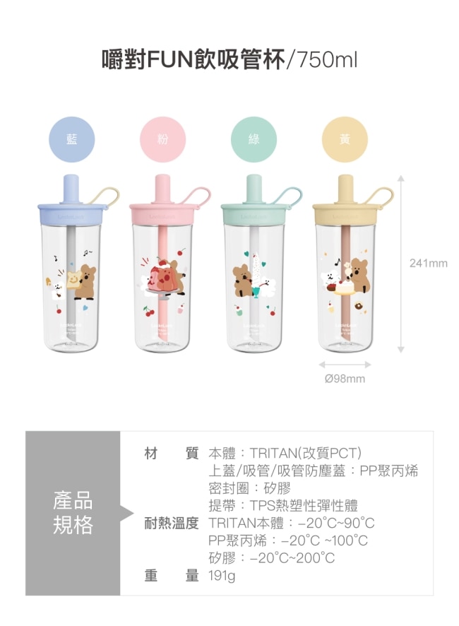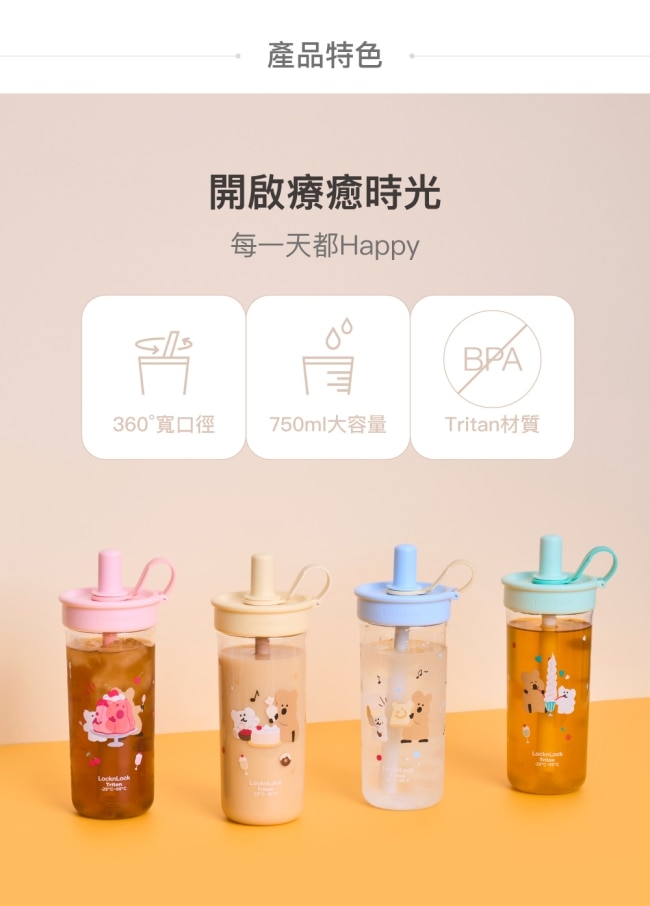 瓶身Tritan(改質PCT)材質安全無毒不含雙酚A不易卡色卡味