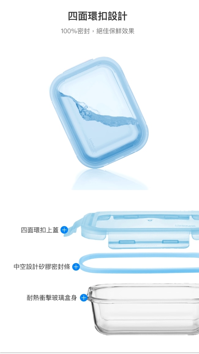 | 商品簡述 | 四面環扣設計100%密封絕佳保鮮效果。質感上蓋配色搭配晶透盒身新鮮收納看的見。 |