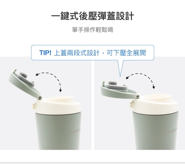 一鍵式後壓彈蓋設計單手操作輕鬆喝