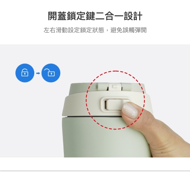 開蓋鎖定鍵二合一設計左右滑動設定鎖定狀態避免誤觸彈開