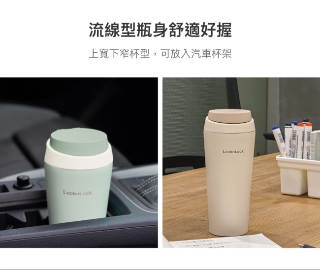 流線型瓶身舒適好握上寬下窄杯型可放入汽車杯架