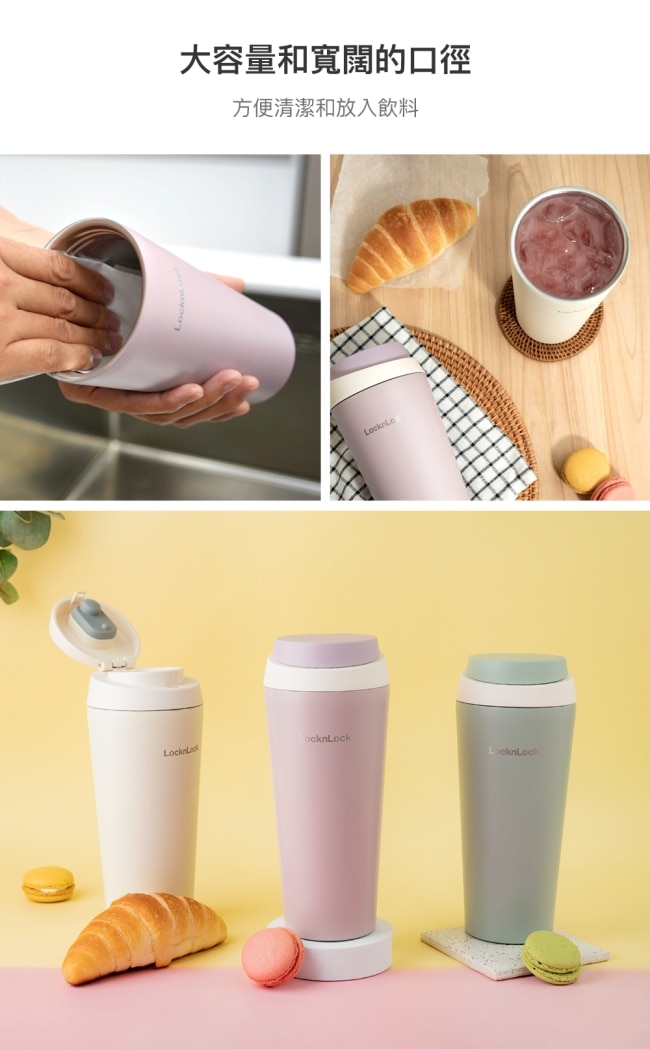 防滑杯墊設計讓杯身更穩固也減少底部碰撞機會。大容量和寬闊的口徑方便清潔和放入飲料