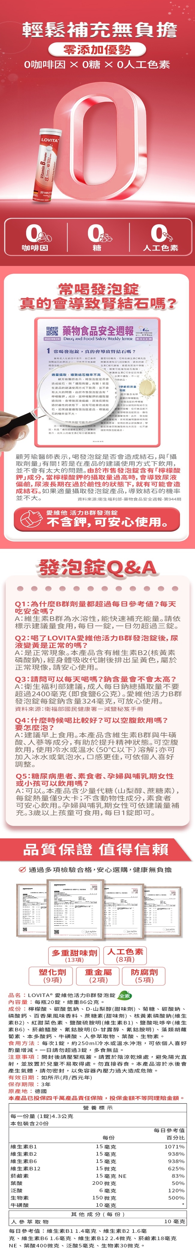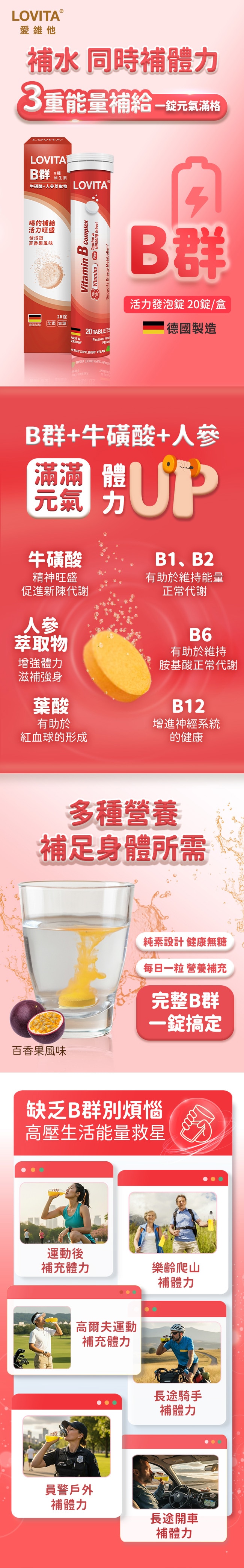 【LOVITA 愛維他】活力B群發泡錠 20錠(全素 德國進口)