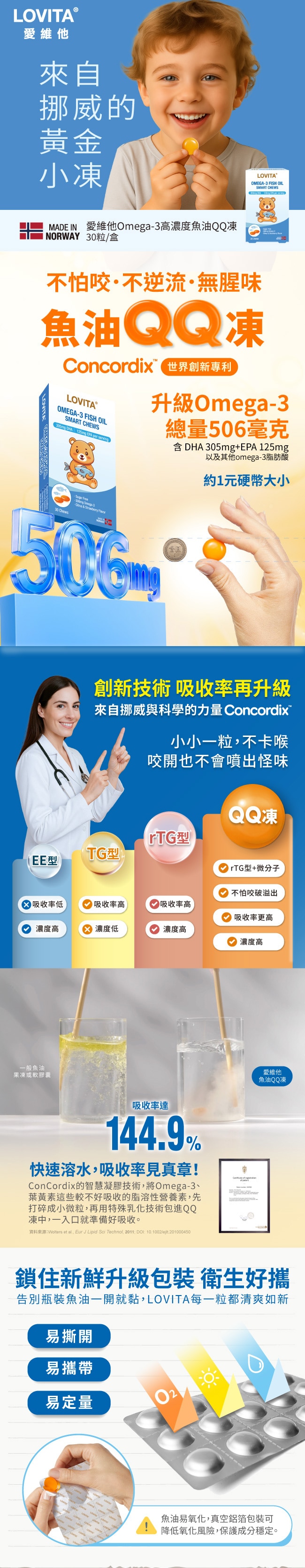 | 商品簡述 | 專利Concordix QQ軟糖劑型高吸收率 rTG 魚油無糖配方、無魚腥味好吃不逆流 |