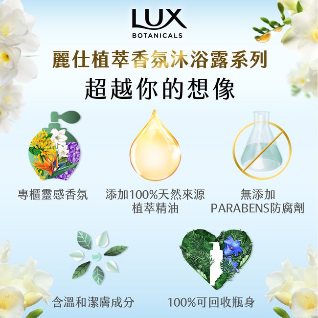 | 商品簡述 | 麗仕第一支! 美出新高度的植萃透明沐浴露! 清新植萃香氛 洗出純粹美肌 |