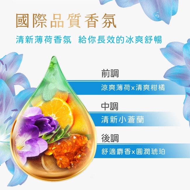 | 商品簡述 | 蘊含加拿大冰河泥和清新薄荷香氛 為肌膚注入活力觸感 給你長效的冰爽舒暢 |