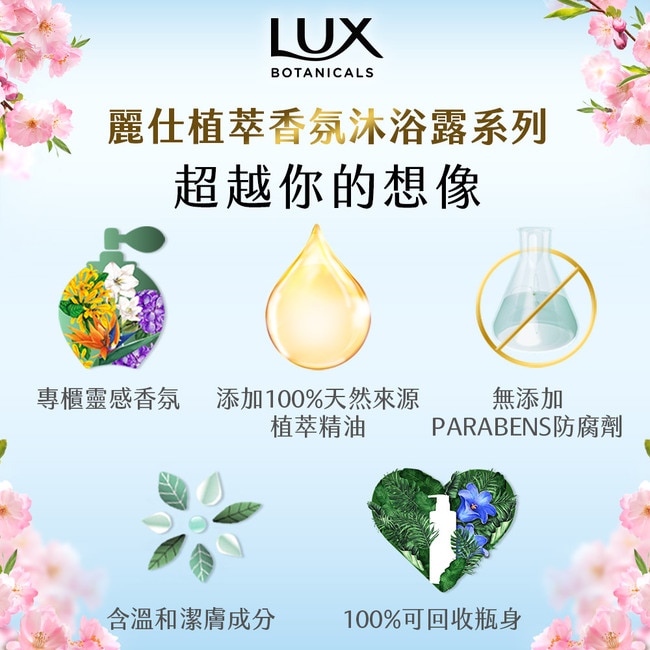 LUX麗仕細緻嫩白香氛沐浴露-櫻花