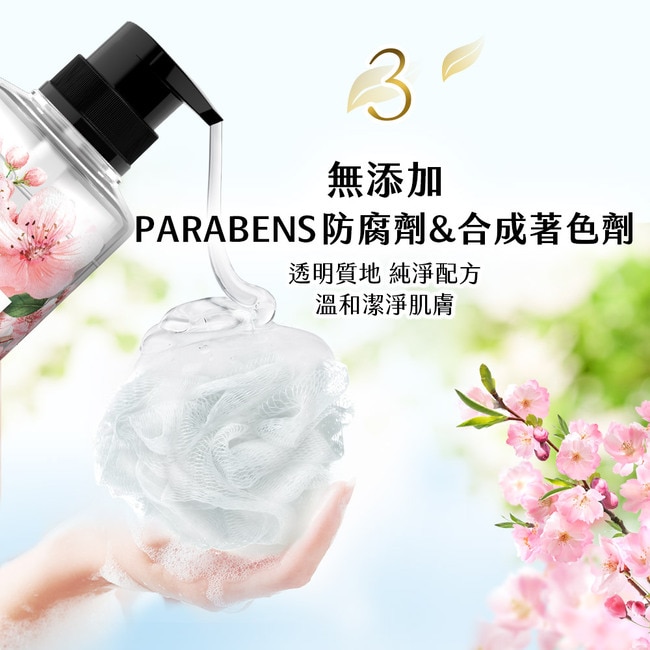 | 商品簡述 | 凝萃清甜櫻花香與珍貴維他命B3 來自春天捎來清新淡雅櫻花香氣 喚醒肌膚光采 重獲櫻花般的光澤柔亮 |