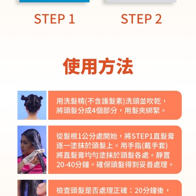 採二劑式設計使用時可依步驟操作協助髮絲於塑形過程中達到更順貼的視覺效果。