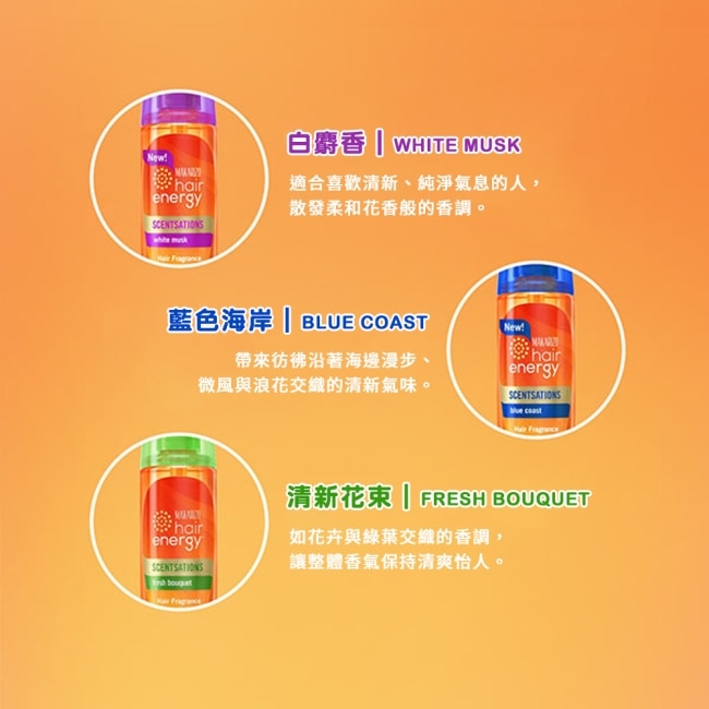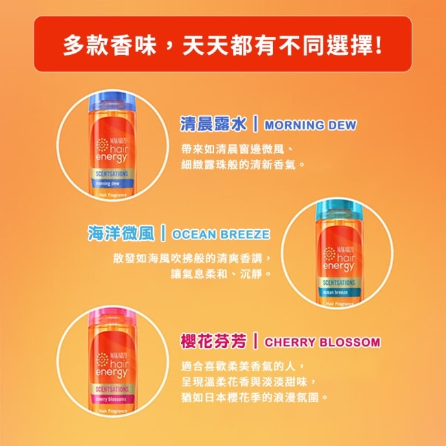 配方清爽不黏膩可在髮絲上形成柔和芳香使甩髮與走動之間增添香氣流動感。