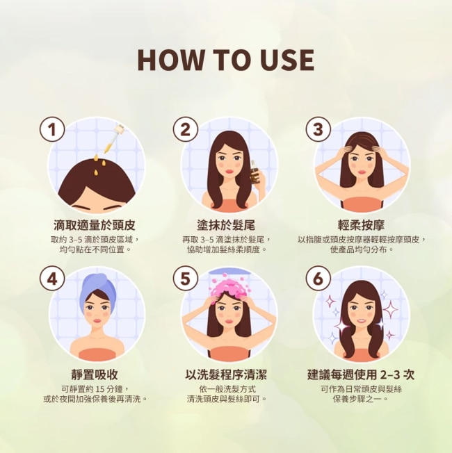6. 建議每週使用 3 次可依個人頭皮狀態調整頻率。