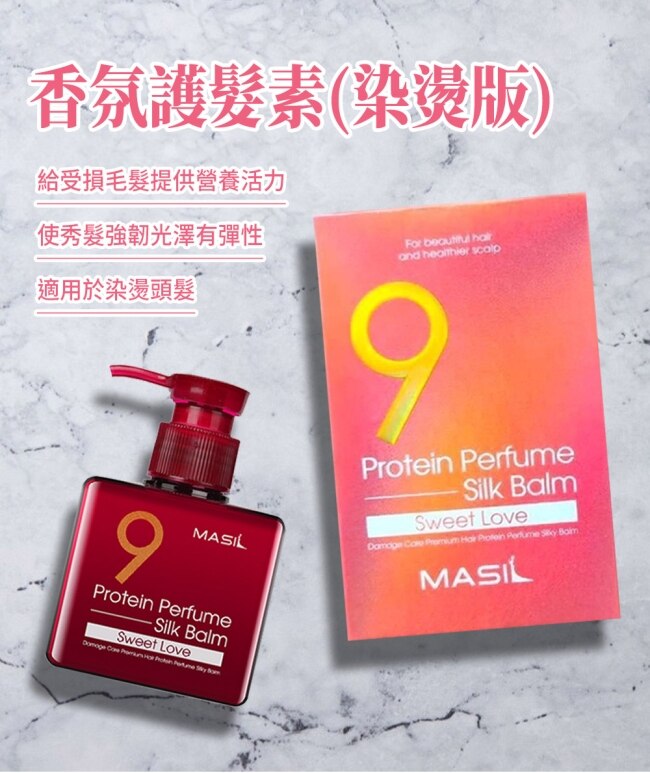 | 商品簡述 | 【韓國MASIL】9肽護髮香氛護髮素(染燙版)180ml |