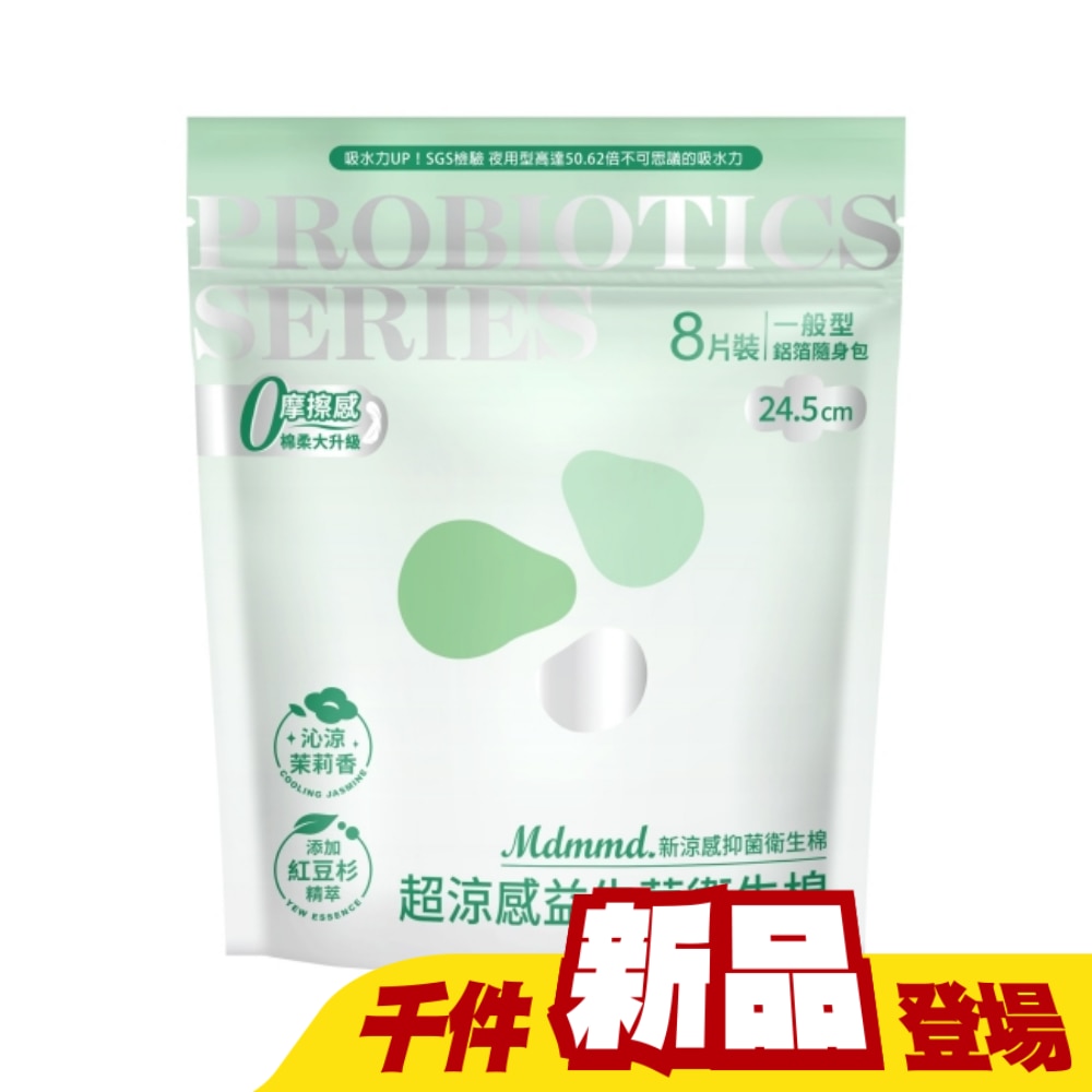 | 商品簡述 | Mdmmd新涼感抑菌衛生棉(超涼感)一般型益生菌24.5cm8片 |