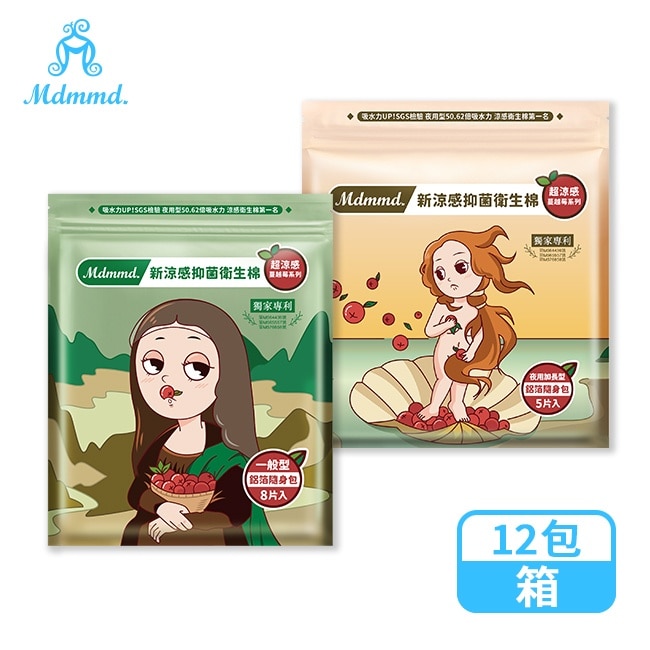 Mdmmd.抑菌衛生棉-【蔓越莓】一般型24.5cm/8片*6+夜用加長型41cm/5片*6