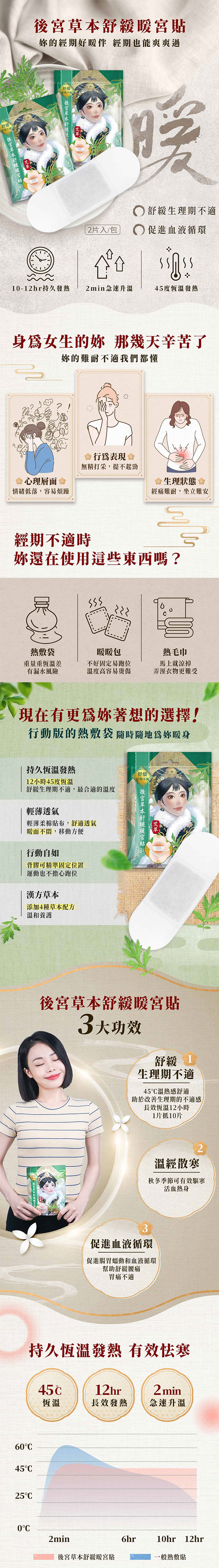 | 商品簡述 | 添加中藥成分讓經期暖暖度過女性生理期間舒緩經痛使用。 |