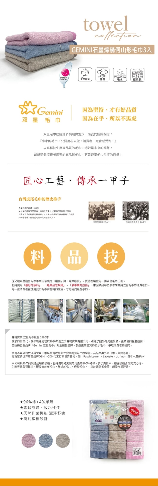 •1.新毛巾如有吸水性不佳或產生黏滑情況發生,可利用清水煮沸即可改善