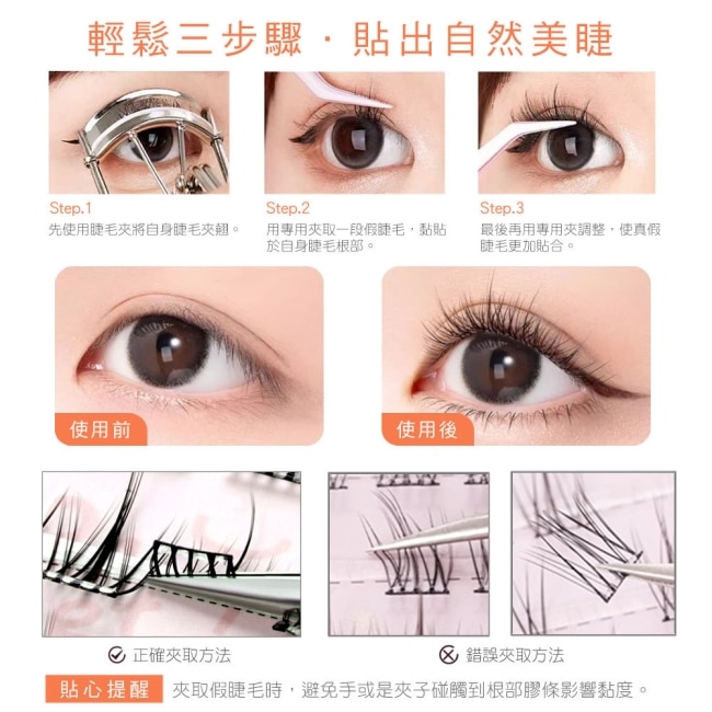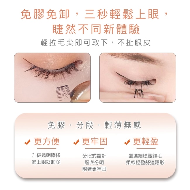 免膠分段式 黏貼好上手 自然纖長 宛如天生
