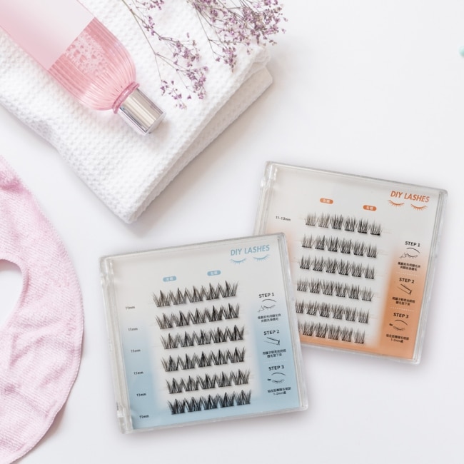 擬真軟毛分段式免膠假睫毛無需膠水即取即用。單簇分段式配戴輕盈舒適。長短適中簡單好上眼