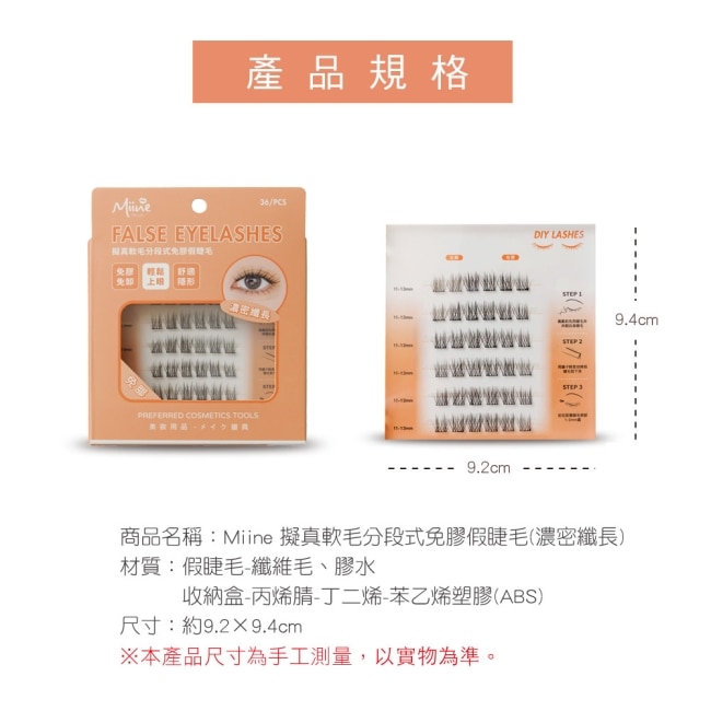 Miine 擬真軟毛分段式免膠假睫毛-濃密纖長36入