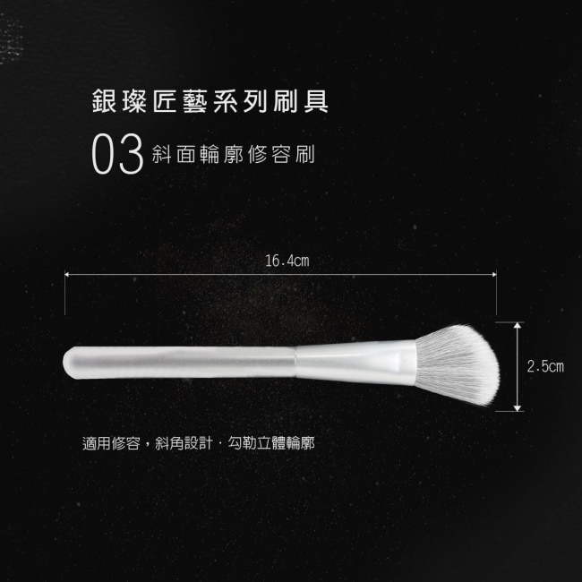 用 途修飾妝容使其更加立體深邃經典圓弧斜面的毛型剪裁貼合臉部輪廓在修容上更加簡單上手。