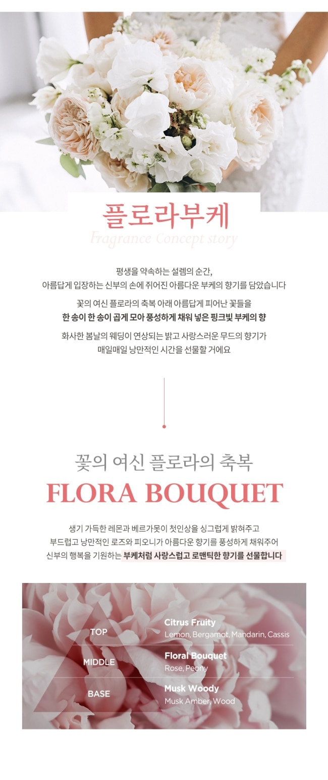| 商品簡述 | 如少女捧著花束般的香氣 前調佛手柑 中調依蘭、玫瑰、茉莉、洋甘菊 後調麝香、廣藿香、檀香 |