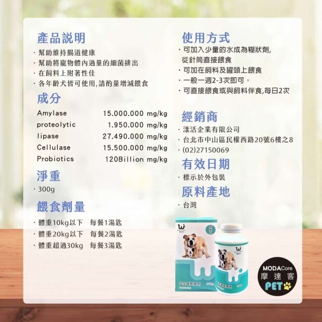 維益特狗狗益生菌整腸劑是專為犬隻打造的高效腸道保健配方,原料產地台灣,適合各年齡層狗狗使用,幫助維持腸道健康、提升消化與免疫力,是毛孩日常保健與腸道調理的必備品。