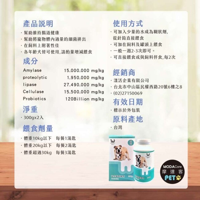 維益特狗狗益生菌整腸劑是專為犬隻打造的高效腸道保健配方,原料產地台灣,適合各年齡層狗狗使用,幫助維持腸道健康、提升消化與免疫力,是毛孩日常保健與腸道調理的必備品。