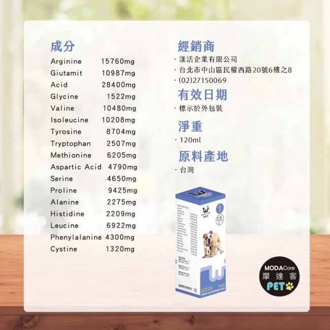 維益特狗狗鈣鎂液態鈣水為台灣醫療級配方,精調鈣鎂黃金比例,搭配多種必需胺基酸。