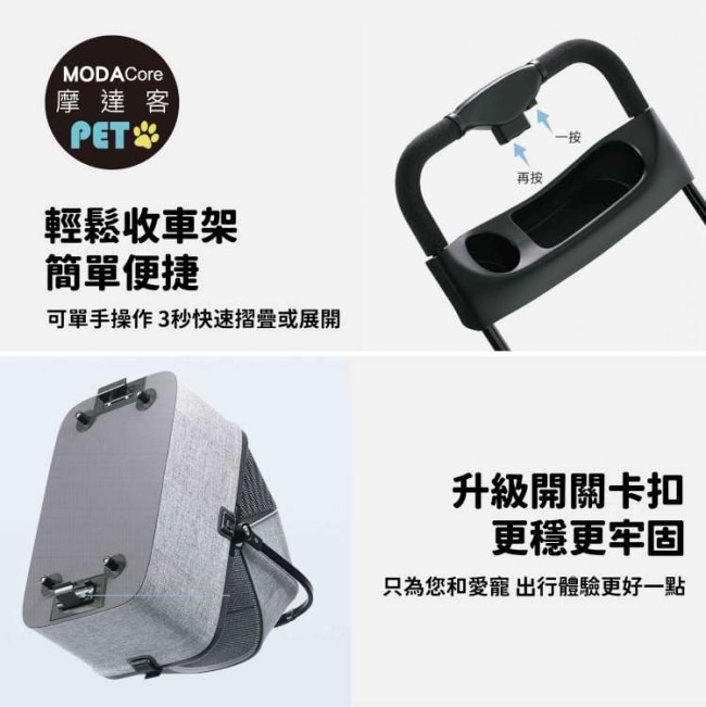 人性化手提與推行雙模式,兼顧飼主使用便利性與寵物乘坐舒適度,是注重質感與實用的寵物家庭外出必備好物。