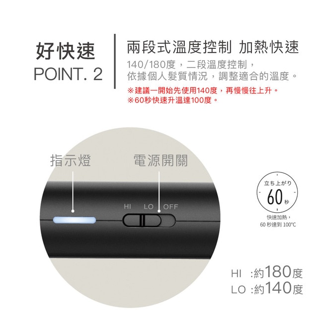 4. 140/180度,2段溫度調節功能