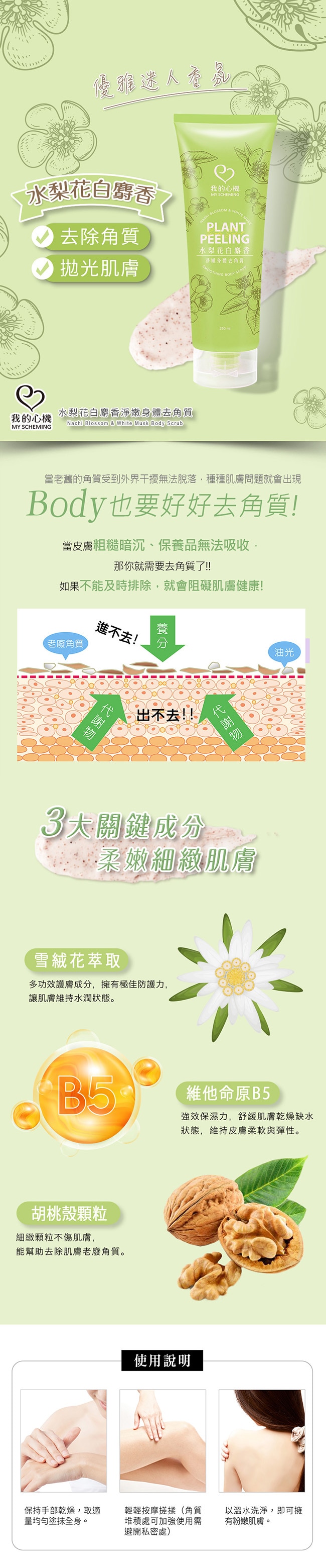 我的心機 水梨花白麝香淨嫩身體去角質250ML