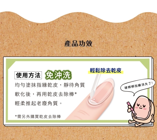 2.適量塗抹指甲周圍乾皮及老廢硬化角質。