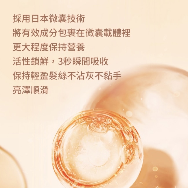 可用於半乾髮或乾髮使髮尾觸感柔軟並呈現自然光澤視覺效果。