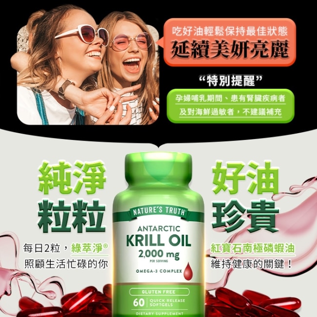 綠萃淨 紅寶石南極磷蝦油軟膠囊x3瓶組(60粒/瓶)