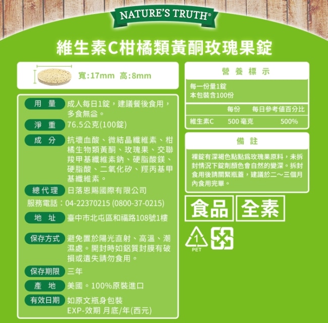 | 商品簡述 | 柑橘類黃酮與玫瑰果豐富維生素C |