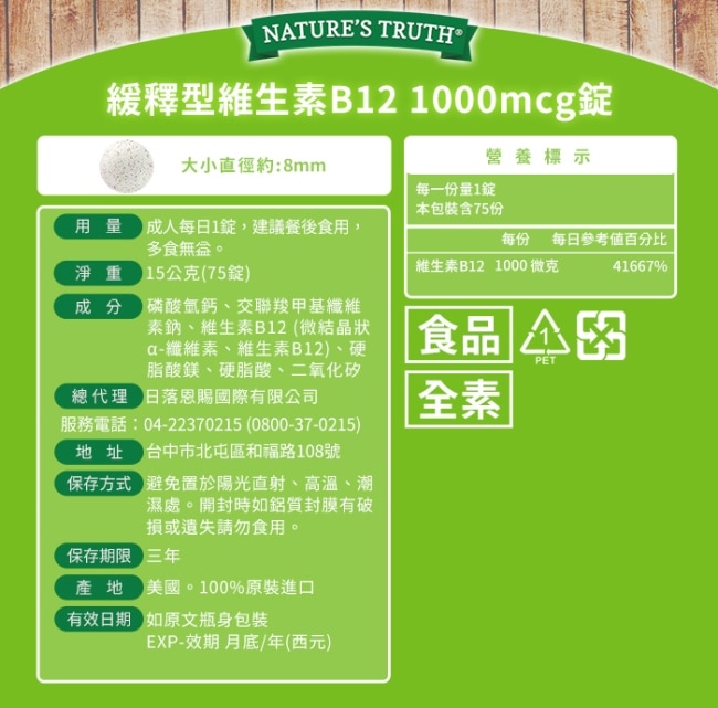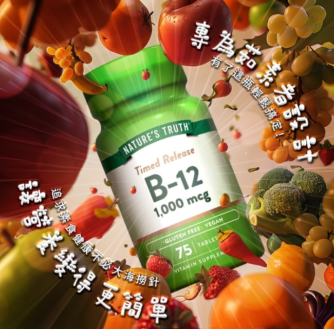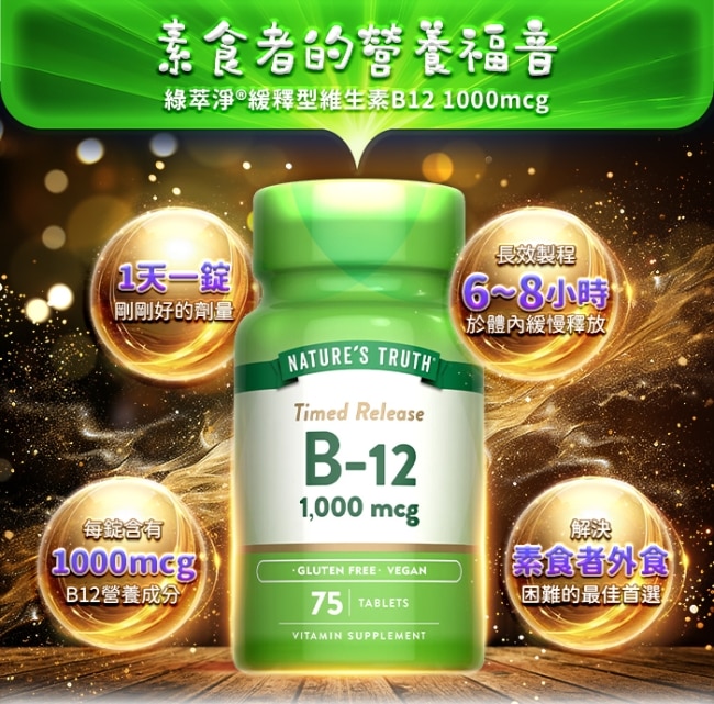 綠萃淨 緩釋型維生素B12 1000mcg錠x3瓶組(75錠/瓶)