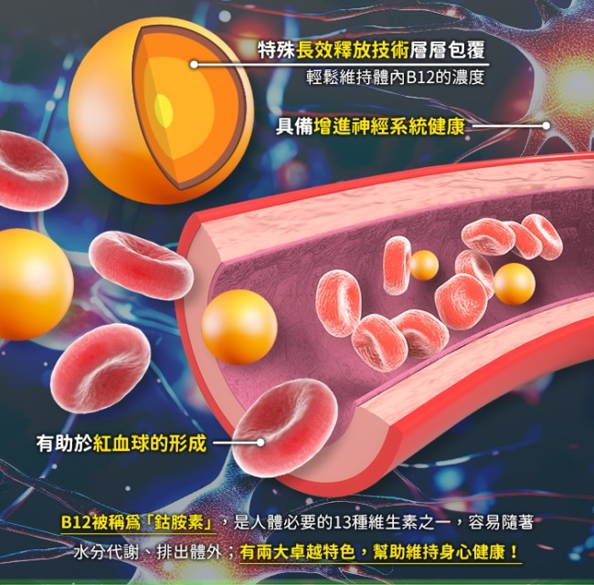 特殊長效釋放技術層層包覆(輕鬆維持體內B12的濃度)