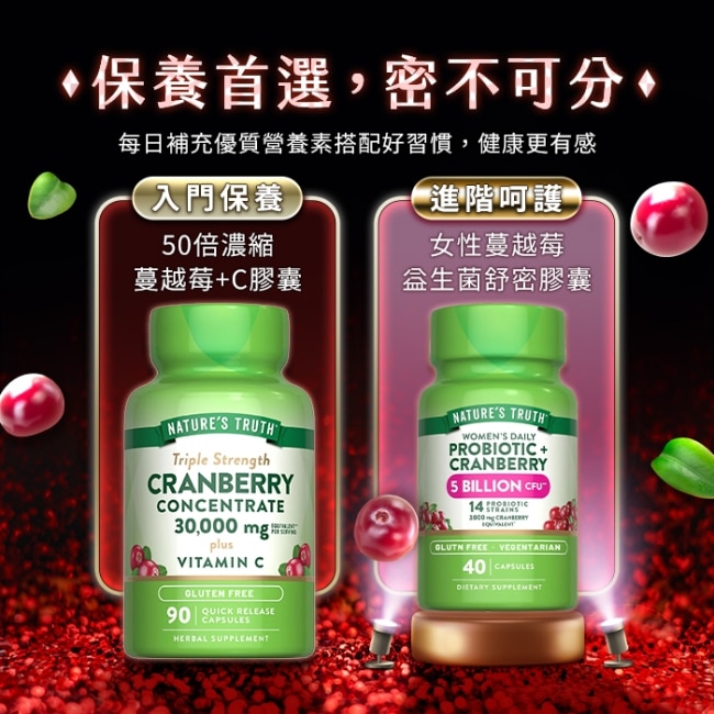 蔓越莓擁有北美紅寶石的美名其優越的防護能力及豐富營養含量自古即作為舒密保養的天然紅衛兵。