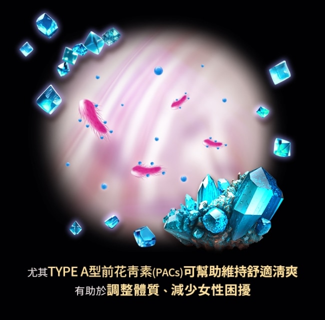 尤其TYPE A型前花青素(PACs)可幫助維持舒適清爽