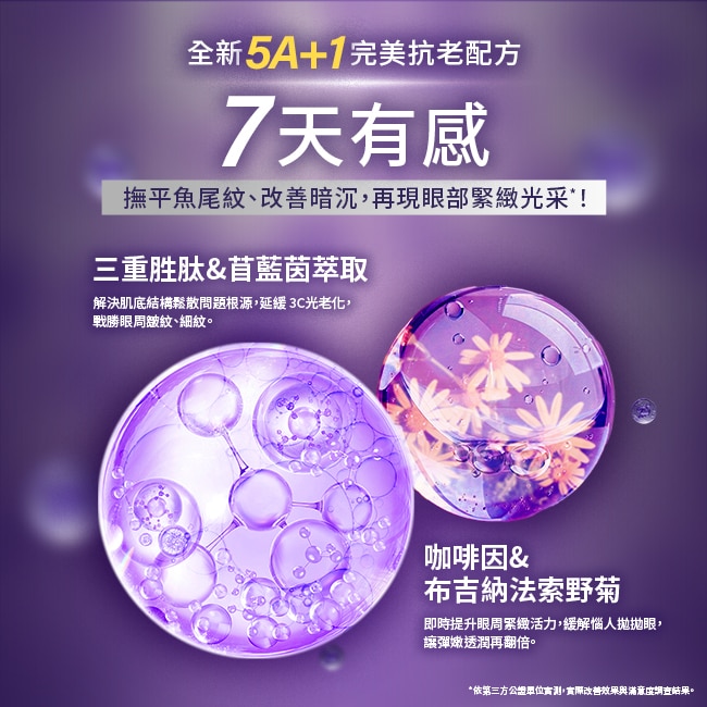 | 商品簡述 | 狙擊眼周細紋 緊緻明亮超有感 |