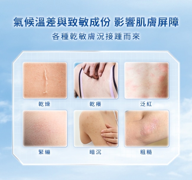 添加高濃度10%-維他命B5+維他命E+甘油修護並強化肌膚屏障對抗因乾燥引起的緊繃、乾癢、泛紅等膚況