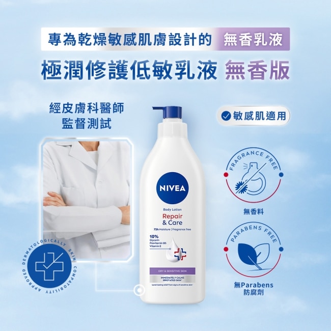 專為乾燥敏感肌膚設計的無香乳液修護6大肌膚乾燥敏感膚況打造健康光澤肌