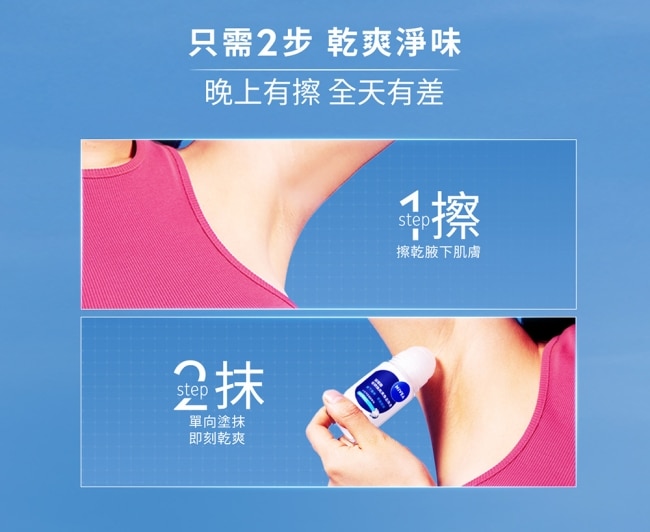 長效乾爽止汗配方,能降低肌膚上過多的汗水,去除體味,止汗效果持久